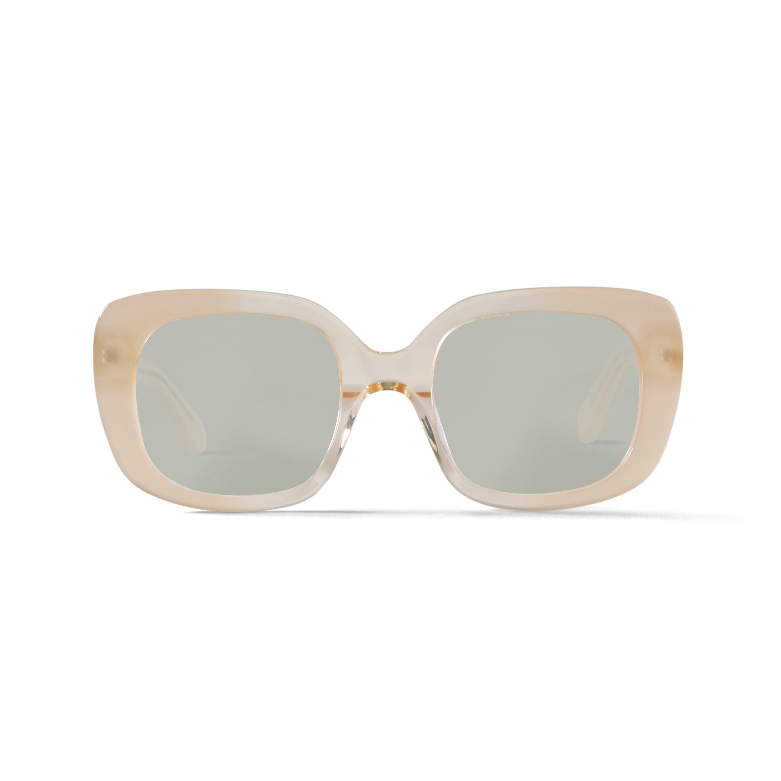 Photo of a man or woman wearing Celeste Sun Gradient Beige Sun Glasses by French Kiwis
